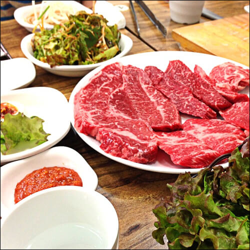 | 갈비 | 풍미가 좋음 | 약간 질김 |