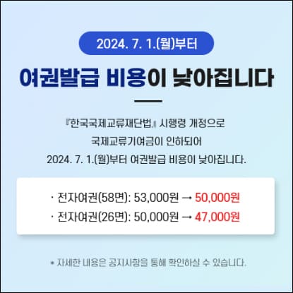 여권 발급 비용이 2024년 7월부터 변경됩니다. 여권 발급 비용에 포함된 국제교류기여금이 인하되는 것인데요. 이로 인해 복수여권과 단수여권, 여권사실증명서 발급 비용이 달라지니 오늘 포스팅을 참고하여 신청하시기 바랍니다.