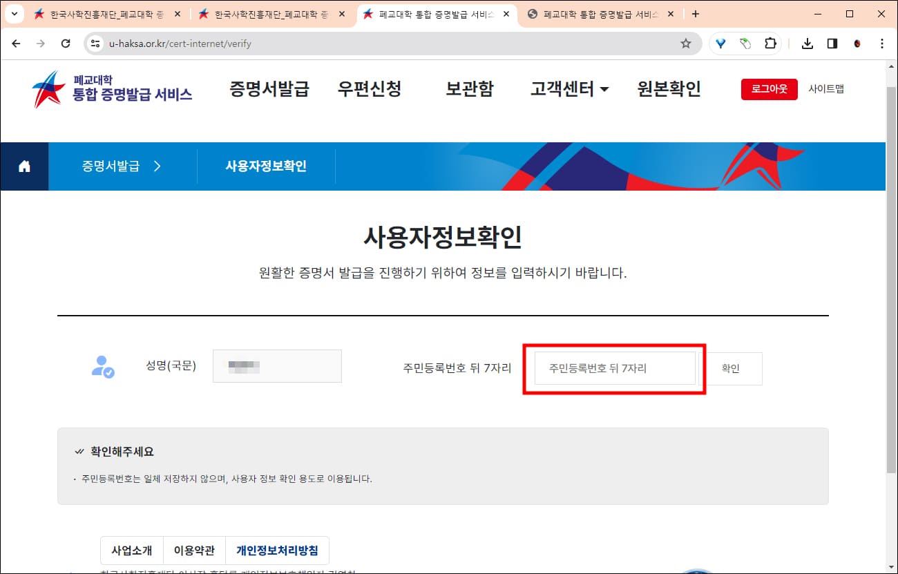 폐교 대학교 종합관리센터 - 대학교 졸업증명서 인터넷발급