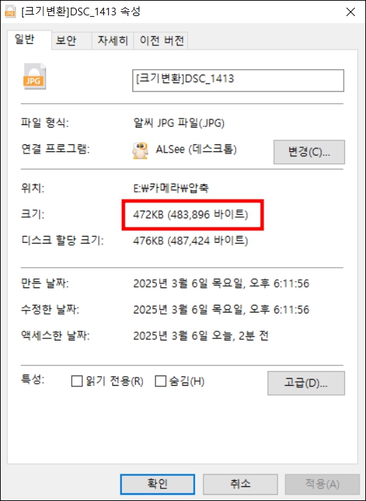 알씨 이미지 용량 줄이기