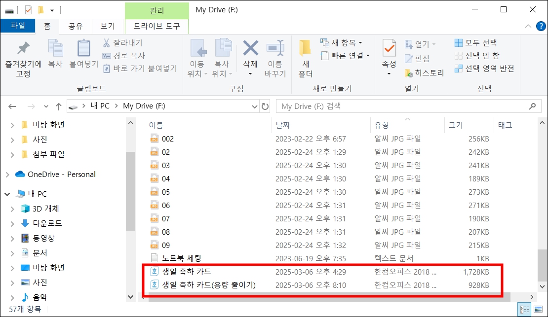 파일 용량을 줄이지 못해서 분할 압축해 공유하거나 업로드하는 분들도 계신데, 특정 압축 프로그램을 사용해야 하는 불편이 생깁니다. 그러므로 가급적이면 한글 프로그램에서 자체 지원하는 기능을 이용하는 것이 좋습니다.