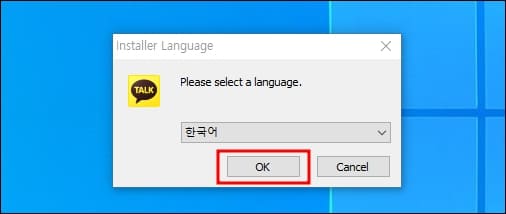 카톡 PC버전 프로그램을 실행하면 가장 먼저 언어 세팅이 나옵니다. 한국어 외에도 영어 등으로 설정할 수 있습니다. 저희는 기본으로 되어 있는 한국어로 진행하겠습니다.