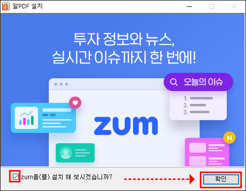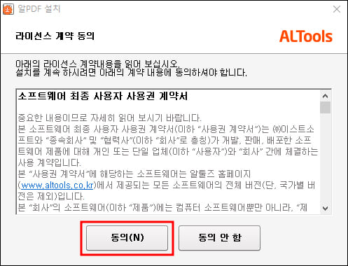 압축파일을 클릭하면 알PDF 설치 화면이 실행됩니다.