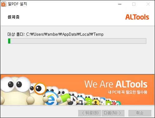알PDF 설치가 진행됩니다. 컴퓨터 사양에 따라 차이는 있지만 1분 정도 걸립니다.