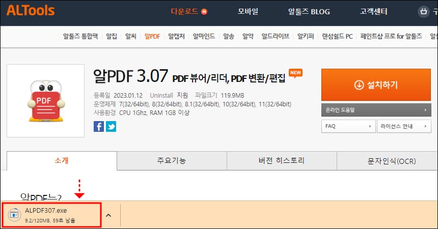 1. 알PDF 파일 무료 다운로드 및 설치