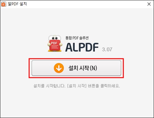 알PDF 설치 시작 버튼을 누릅니다.